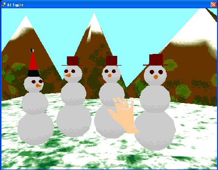 The screen shots in Images 2 and 3 show how the game begins and what happens when the player selects the correct snowman (the graphical hand is controlled by the tracker worn by the user. )